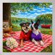 Luna the Boston Terrier and Louie the JackChi are enjoying some downtime with a picnic under a tree, by the lake, and maybe a row later.