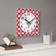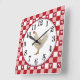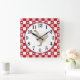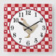 10.75” x 10.75” acrylic wall clock with an image of a red, pink and white chequerboard accented with white chickens and roosters, reminiscent of a country picnic tablecloth. Easy-to-read round white clock face has red border and image of a leghorn chicken. See the entire This & That Clock collection in the HOME section.