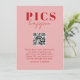 Modern blush, red bold font, wedding "Pics happen!" Card with couple's name,