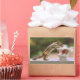 A picture of a chipmunk with a china teacup with the squirrel standing on its hind legs looking into the cup. This chipmunk photo was taken from the side so that you can see the chippie's striped back and the pretty floral red rose design of the white bone china teacup. The chipmunk is standing on a white deck tailing and the background is of flowers and green trees. This cute chipmunk picture can be easily customised and printed on many different photo products. It's tea time, so will you pour?