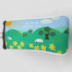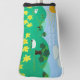 The original and cute illustration on this original and fun golf head cover is a painting in a "nieve" sort of style, it's bright and colourful. The picture shows some white and fluffy black faced sheep grazing behind daffodils on the hillside as the large sun shines down upon them, the sky is blue with fluffy clouds floating by. In the background you can see small leaf covered trees with red apples on them. This case has the fun slogan "May the sun shine on you!" and is suitable for people of all ages.