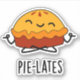Pie-lates Funny Food Pie Pun features a cute pie in a meditation pose. Perfect pun gift for family and friends who love cute food pie puns.