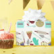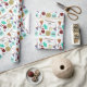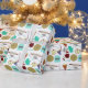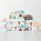 Wrapping paper featuring a pie themed pattern with illustrations of a stove, fruit, kitchen utensils, and pies.