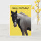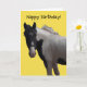 Lovely photographic image of a piebald black and white coloured/coloured pony on a bright yellow background. Message on front of card and inside can be changed to a message of your choice if desired. All text is set as template text for your convenience.