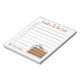 Notepad design features an original illustration of a slice of carrot cake with cream cheese frosting, with TO DO LIST in a fun brown font, and "piece of cake" already checked off the list. Simply personalise with your information.