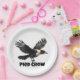 Pied crow with wings open paper plate