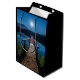 A gift bag with a beautiful photograph of a wooden pier stretching out over a calm lake.