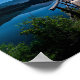 A poster with a beautiful photograph of a wooden pier stretching out over a calm lake.