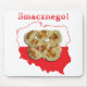 Beautiful Poland Map with red and white flag overlay and a bunch of Pierogi in the centre and Smacznego! above the map. Great gift for anyone with Polish roots.