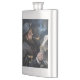 The product is a good size and came exactly as it was pictured.  The lid is not attached to the flask, which could be dangerous on drunken nights... The print came out surprisingly well and looks very sharp.  Would definitely recommend.