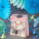 Pink tent-style favour box with a pink ribbon and a vintage image, on the front and back, of the sad clown Pierrot with a tear in her eye and a long-stemmed rose in her hand. Pierrot is a character that has evolved in appearance with Romantic, Decadent, Symbolist, and early Modernist Theatre and art. This image is the popular image of Pierrot in the 1980s. See matching confetti, favour bag, gift bags, gift tag, label, round sticker and wrapping paper. See the entire Tubular 80s Favour Box collection in the SPECIAL TOUCHES | Party Favours section.