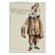 Greeting card made from an engraving by Danish artist Hans Peter Hansen (1829-1899). The picture shows Pierrot, a stock character of the Italian Commedia dell'Arte troupe. Pierrot is the sad clown, pining for love of Columbine, who usually breaks his heart and leaves him for Harlequin...