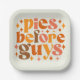 This fun and cheeky fall-themed design features the playful phrase "Pies Before Guys" in a bold, retro-inspired font. The text is arranged in a compact, stacked layout with each word in a different font style, creating a dynamic and eye-catching composition. The colour palette includes warm autumnal hues like deep oranges, rich browns, and golden yellows, perfectly capturing the cosy vibes of the season.