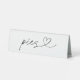 Our pies acrylic table tent display sign features hand lettered typography adorned with a heart for a minimal and elegant way to display food at your wedding reception or event.