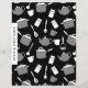 Custom double sided chapter divider page for a black, white and grey kitchen utensil cookbook recipe binder. Features a fun and whimsical kitchen utensil pattern in a black, white and grey colour palette with customisable text presented on a coordinating banner.