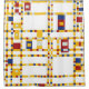 This abstract oil painting from 1942 in the Neoplasticism style is a combination of multi-coloured grid lines with blocks of colour in blue, red, yellow and grey representing Manhattan city street grids and the beat of boogie woogie music of which Mondrian was so fond.