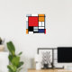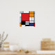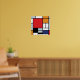 This oil on canvas from 1920 shows a composition with black, red, grey, yellow (orange), and blue blocks in a style that came to be known as De Stijl or Neo-Plasticism.