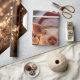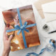 Decoupage craft wrapping paper featuring an adorable pig wearing a Santa hat and surrounded by Christmas twinkle lights.