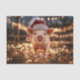 Decoupage Tissue Paper featuring an adorable pig wearing a Santa hat and surrounded by Christmas twinkle lights.
