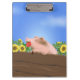Pig in Pan holding rose cartoon illustration animal farm sunflower flower