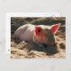 A cute shot of an adorable little piggie rolling around in the dirt.