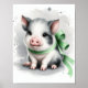 Cute Pig in black and white with a touch of a sage colour on the ribbon.