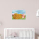 A happy pink pig on a farm with a stack of hay. This design looks really effective on this Poster