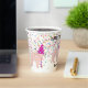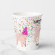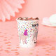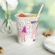 A cute illustration of a pig partying and having fun! Pig wearing a party hat and blowing party horn with confetti raining down on it. Let the celebrations begin! Perfect for anyone who loves funny animal illustrations. Ideal birthday party paper cup. Customise the occasion and name and make it your own.