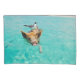 Pig swimming with a gull on his head in the Cayman island's beautiful waters.