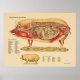 Pig anatomy chart created with vintage anatomical illustrations. Shows the internal organs of the pig. The heart, liver, digestive organs, the spinal cord. Chart for the farm or veterinary office.