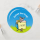 A cool pig with sunglasses over green grass under blue sky with a sign ready to pass your message.