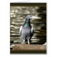 Domestic pigeon enjoying some sunshine on a rock beside a pond.