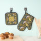 Pigeon Blue Yellow Fish Art Nouveau Oven Mitt & Pot Holder Set