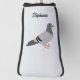 This pigeon design golf club head cover is an accessory that you slide over the head of a golf club for protection against knocks whilst sitting in your golf bag. Made out of polyester, cotton, and marine vinyl with a choice of different piping colours. You can customise this golf club head cover with any text. Should you require any help with customising then contact us through the message link on this page. Pigeon design golf club head cover.