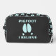 Maybe it is just a typo, or a mutant Sasquatch; or maybe some parts of the world are inhabited by another class of cryptid animals. A simple, blue representation of a feral hog's footprint along with text reading, "PIGFOOT." Customisable text reading, "The Quest To Bring Home The Bacon" also appears. Who knows what is out there running around in the woods? Become a Pigfoot researcher and bring home the bacon.