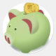 A cute green piggy bank, this design is really cool and fun to look at. The piggy bank also has some coins being deposited into it and the pig looks pretty happy about that. This piggy bank design looks great on these stickers. Perfect for yourself or as a gift