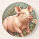PIGLET. Beautiful farmhouse coaster featuring a piglet on floral background. Vintage Art Nouveau Inspired look. Generative Art design.