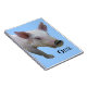Photograph of piglet on blue (customisable) background with the word "oink" printed below. (text customisable)