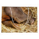 This very cute pig is sound asleep in their straw bed.