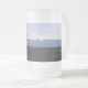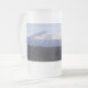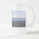 A frosted mug featuring a photo of Pike's Peak in Colorado.