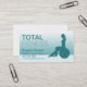 Illustration of a woman working out with a physio-ball in a blue colour with and lighter purple and white gradient background. Text is in a matching colour and with a modern, crisp font. Great looking business card for a Yoga, Physioball, Aerobics, Pilates, Personal trainer or anyone in the fitness industry.