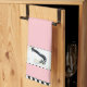 Background colour of towel can be customised. Printed part is black and white with a checked border.