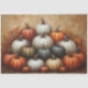 A richly saturated painting of a vibrant pile of pumpkins in various autumn colours, celebrating the warmth and abundance of the fall season.