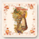 Set of coasters, each with a vintage Thanksgiving image of a Pilgrim Girl with cornucopia.