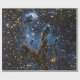 "Pillars of Creation" is a photograph taken by the Hubble Telescope of interstellar gas and dust from a cluster of young, massive stars in a small region in the Eagle Nebula, or M16, some 7,000 light years from Earth. This NASA image from 2015, taken in near-infrared light, transforms the pillars into eerie, wispy silhouettes, which are seen against a background of myriad stars.