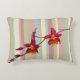 Pillow with a spray of cranberry Cattleya Orchids on a pastel striped background. Special design for a special person.