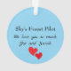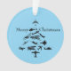 In the front, is an illustration of a fun Christmas Tree made from different aeroplanes with typography 'Merry Christmas', which can be customised. On the back a heartfelt message 'Sky's Finest Pilot, we love you very much, [Names]' that can also be customised. It's a cool Aviation ornament in a minimalist design. Perfect for a Pilot that likes simplicity.