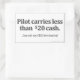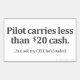 Pilot carries less than $20 cash rectangular sticker