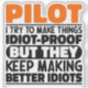Funny Pilot Sayings "Pilot I Try To Make Things Idiot Proof But They Keep Making Better Idiots". Grab this Funny Pilot design as a funny gifts for an awesome mum, dad or friend.