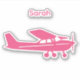 Personalised Pink Cessna Aeroplane Icon Sticker, Custom Name Decal.